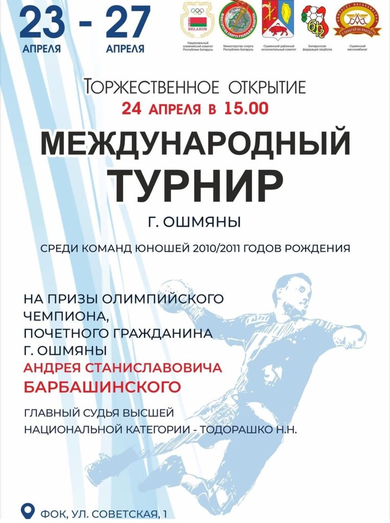 Не пропустите одно из самых статусных спортивных событий этой весны! С 23 по 27 апреля наш город станет центром международного гандбола. Юные таланты будут бороться за победу в турнире на призы легенды мирового спорта, Олимпийского чемпиона Андрея Барбашинского.
