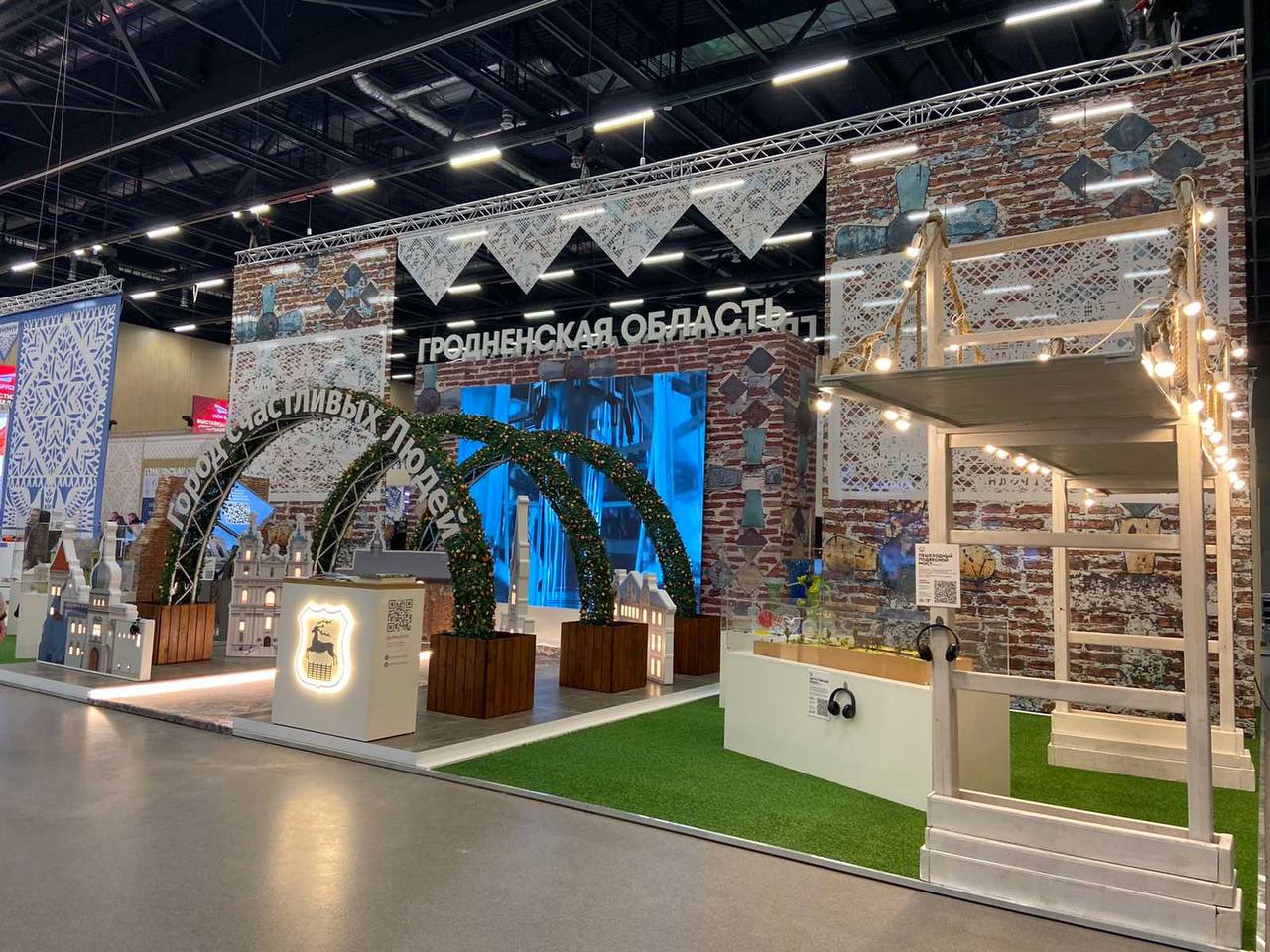 Гродненщина представила на стенде Лидский, Новогрудский, Гродненский и Мирский замки, Августовский канал, достопримечательности Волковысского района, обновленный мост в Мостах, Свято-Успенский Жировичский монастырь и другие святыни. Можно увидеть предметы археологических раскопок, выставку художественных изделий из стекла от стеклозавода “Неман”.