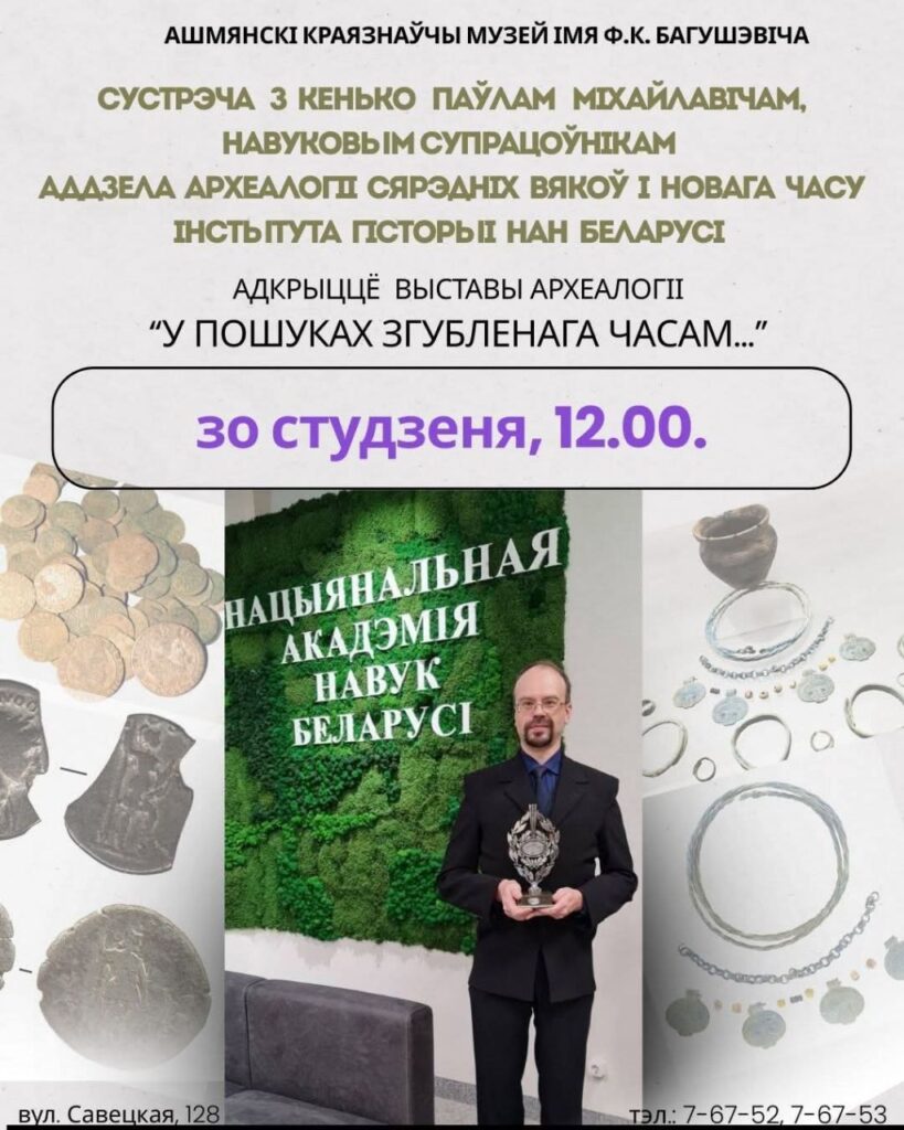 30 студзеня ў 12.00. вас чакае сустрэча з навуковым супрацоўнікам Інстытута гісторыі НАН Беларусі Паўлам Міхайлавічам Кенько, падчас якой мы даведаемся: